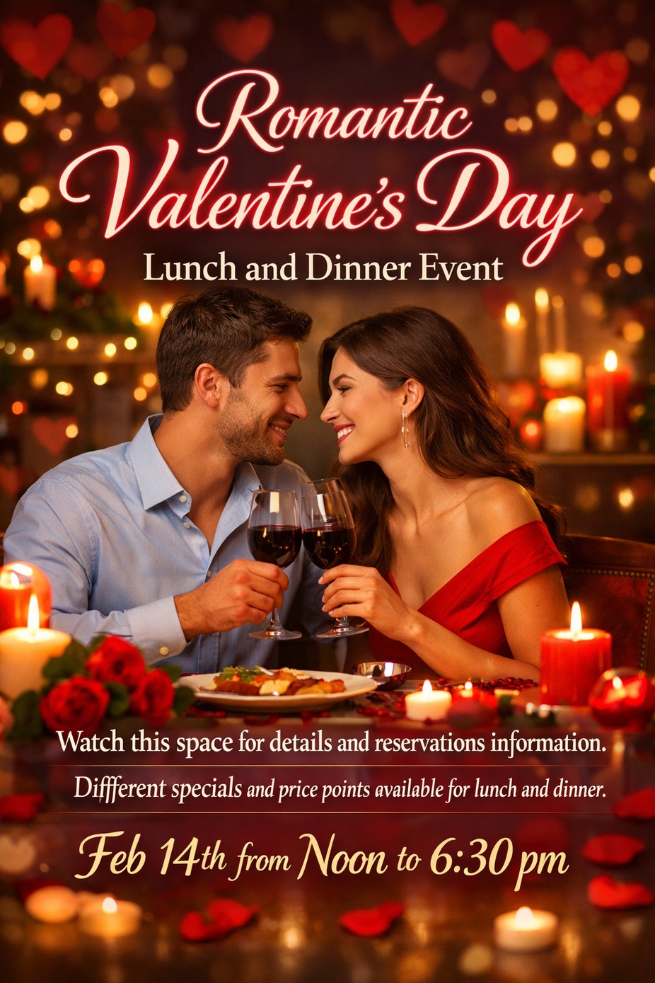 Join us on Valentine's Day for the perfect romantic lunch or dinner!